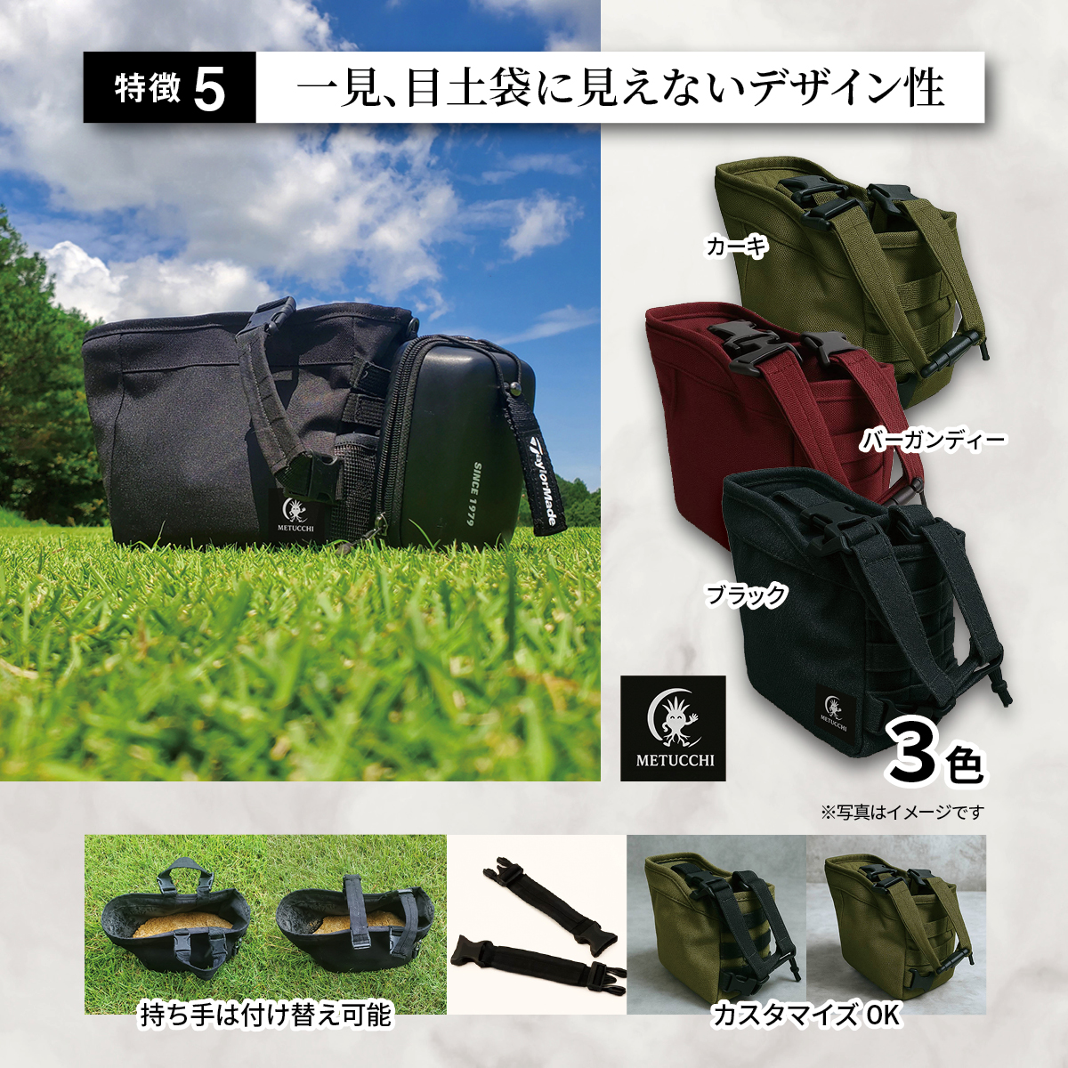 セルフプレーヤーの悩みを解決する、新発想の目土袋。